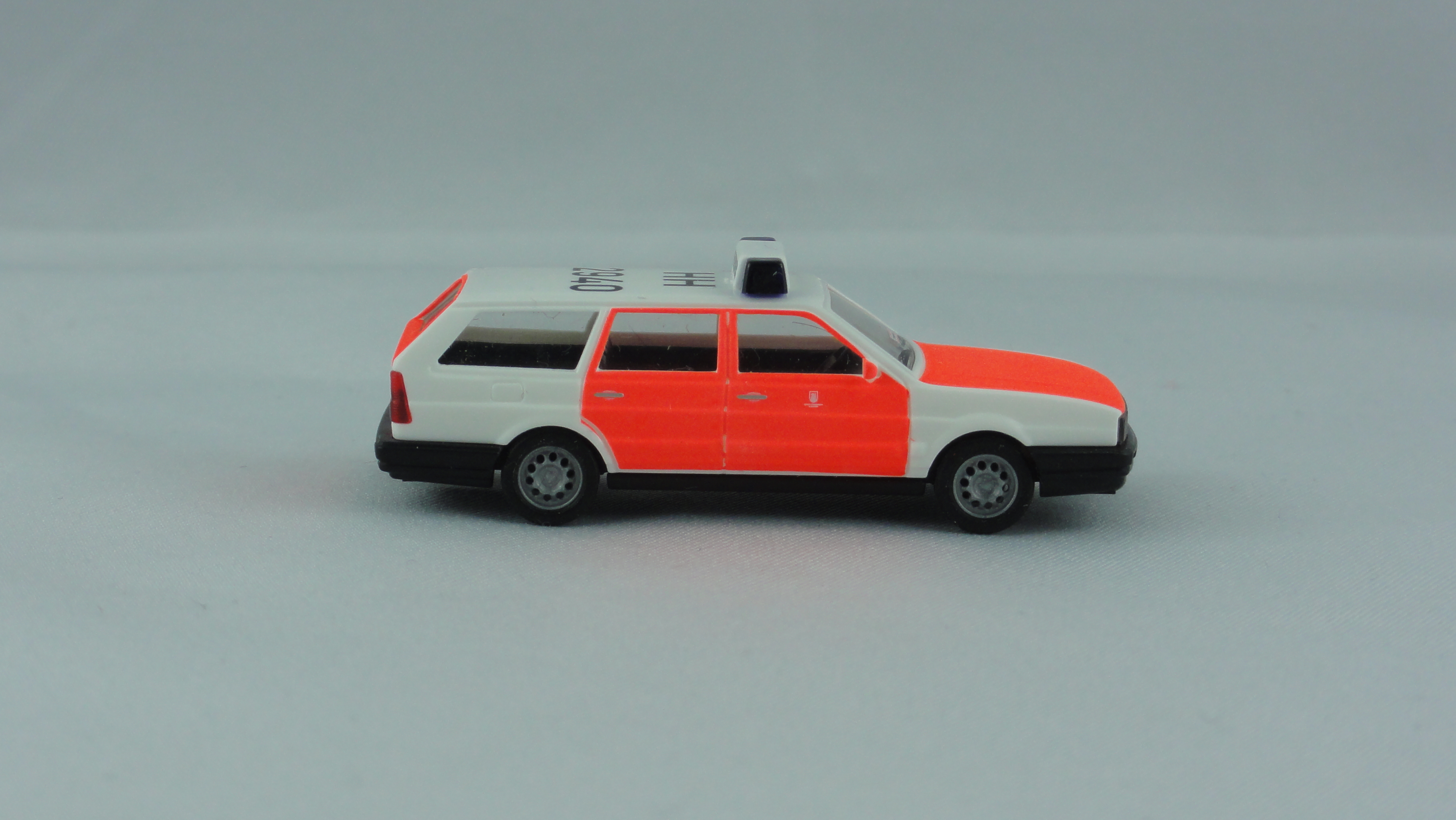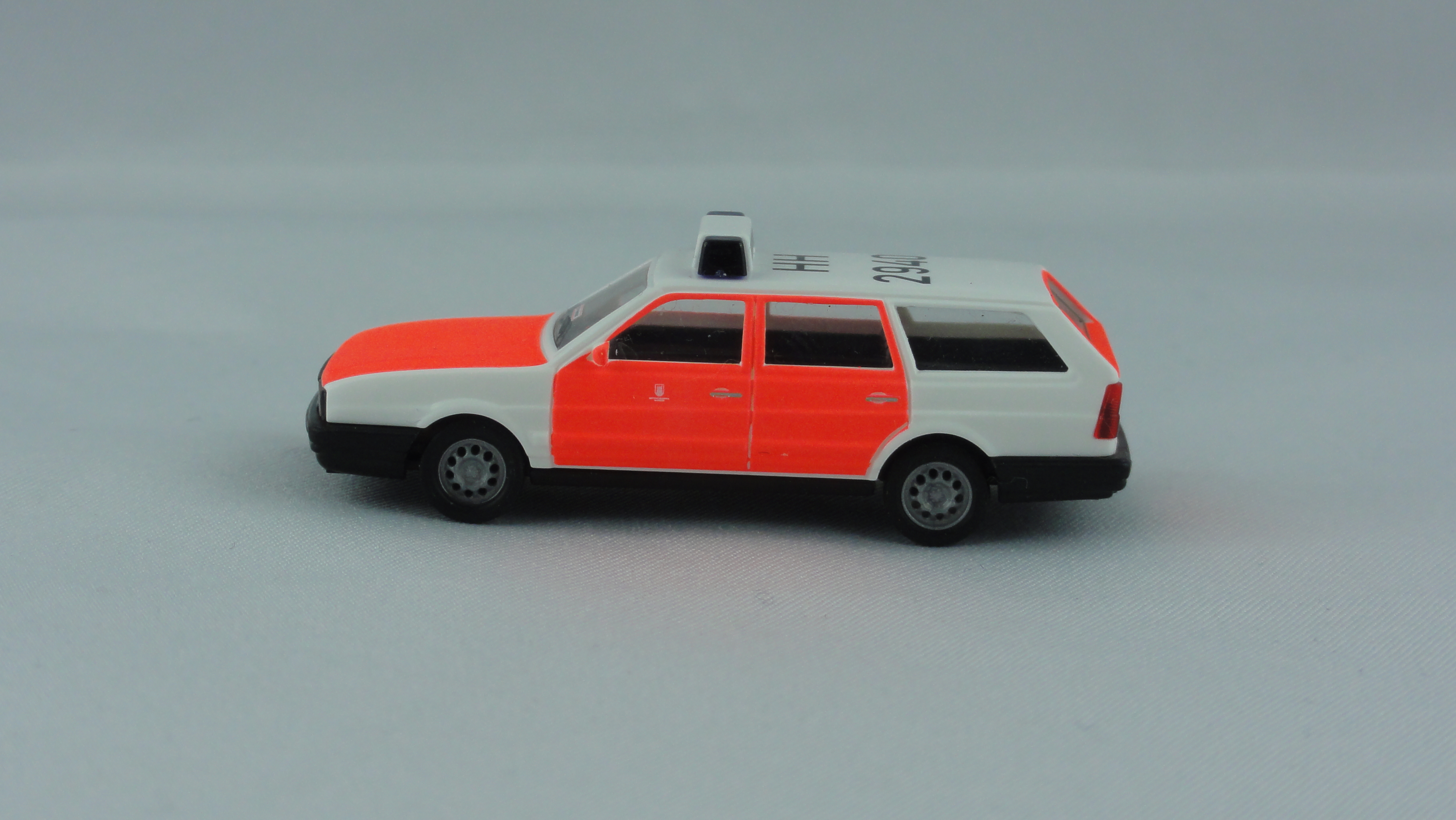 Busch VW Passat Variant ELW / KLF Feuerwehr Hamburg – Innenstadt (BF) HH 2940, Sondermodell . Modell ist in weiß mit leuchtfarbenden Türen, Motorhaube und Kofferraumklappe. Kennzeichendruck vorne + hinten, Dachkennung, Logo auf den Türen von Hamburg und Wachkennung in der Windschutzscheibe.