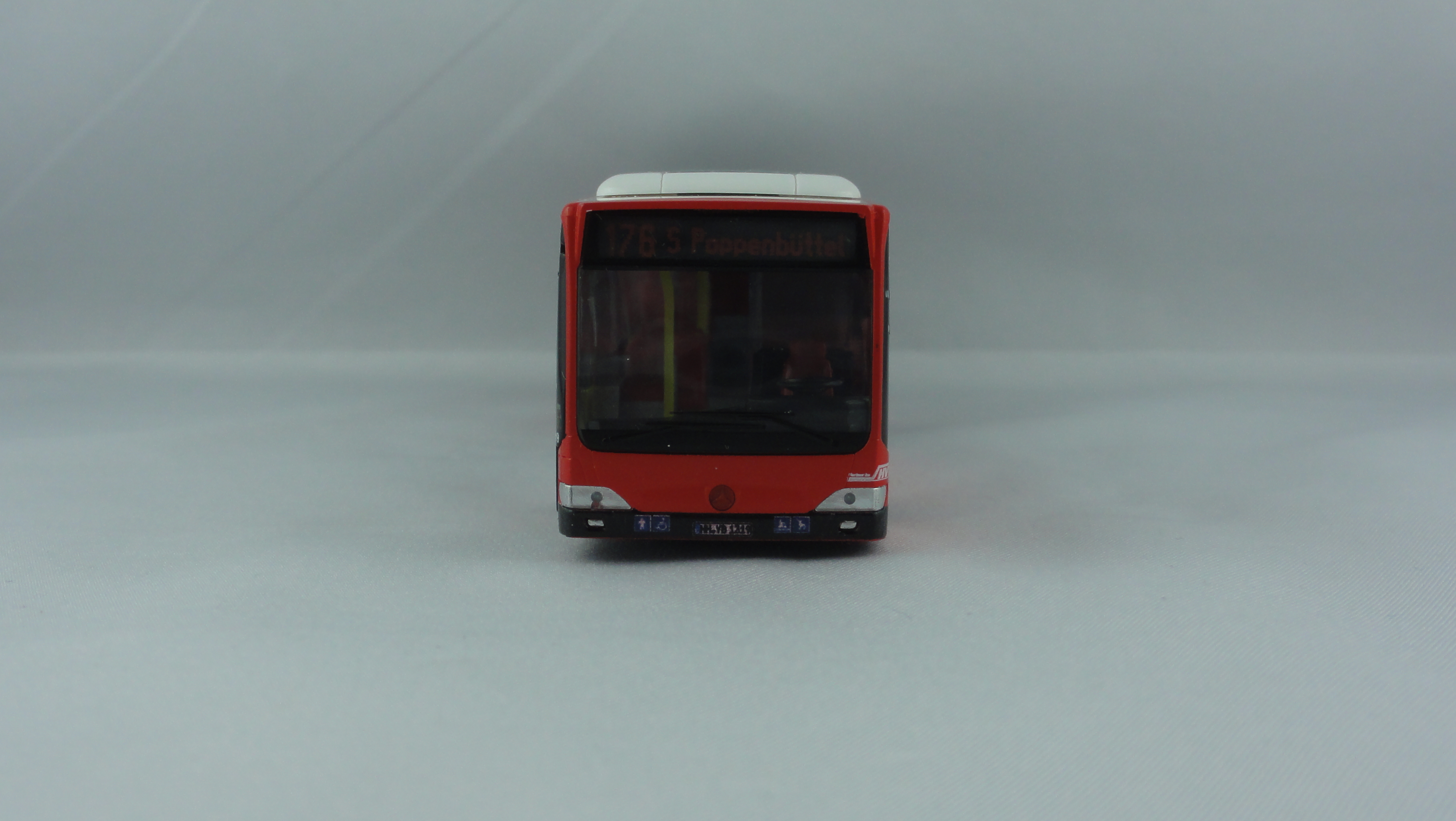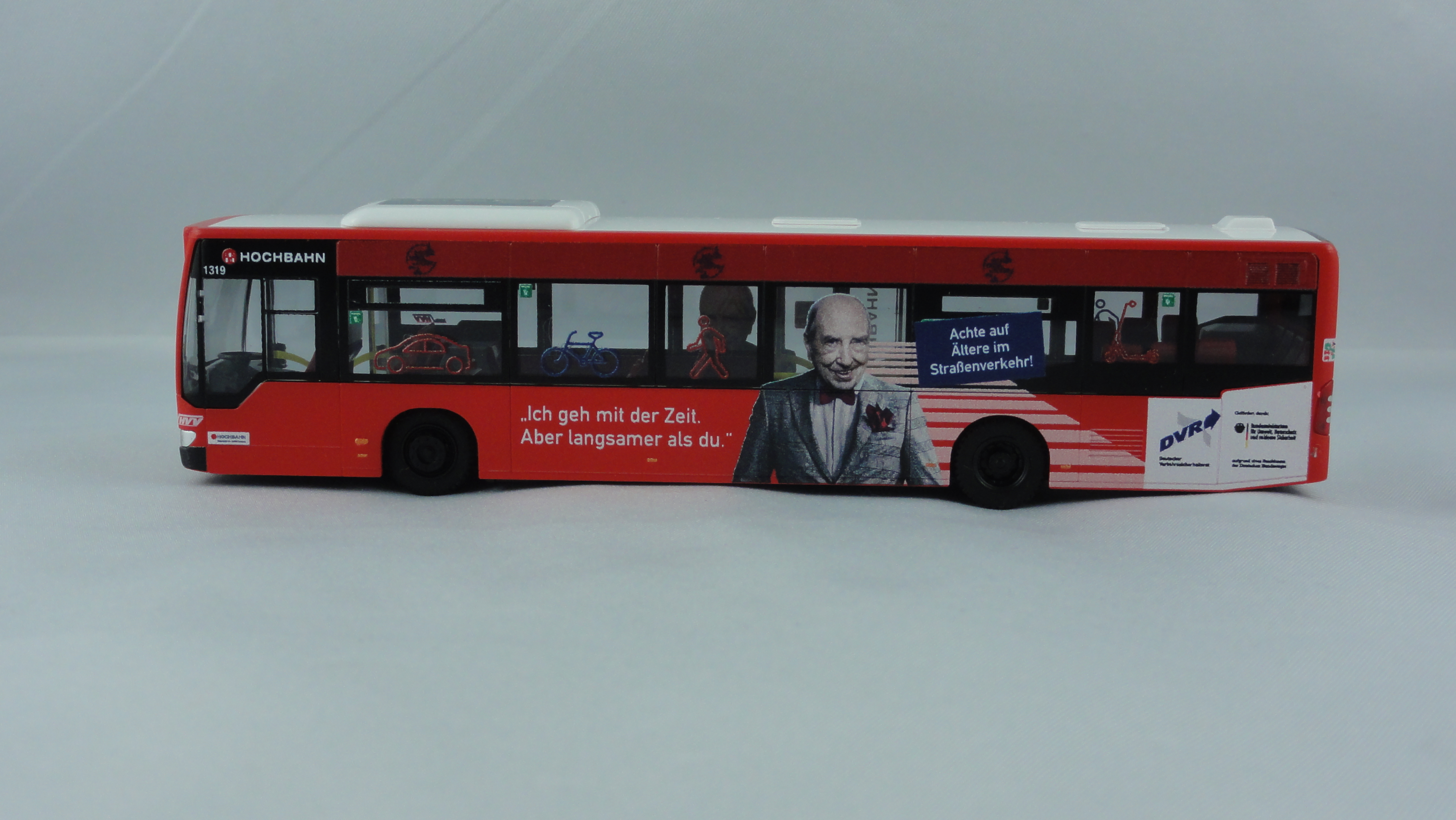 Rietze MB Citaro 06 Hamburger Hochbahn mit DVR Werbung “ Achte auf Ältere im Straßenverkehr “ – Wagennummer 1319- Zielanzeige Linie 176 S Poppenbüttel