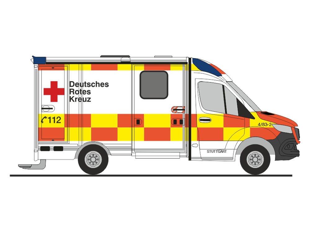 Rietze MB Sprinter 18 Strobel RTW „DRK Stuttgart“, NH 09-10/24
