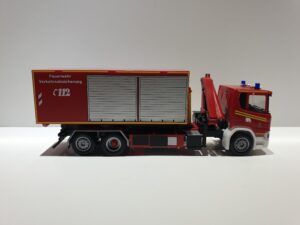 Herpa Scania CG 17 WLF mit Kran Feuerwehr München mit AB Verkehrsabsicherung.